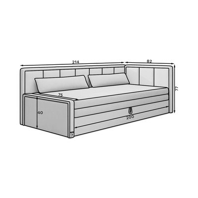 Zsenília, kinyitható-tárolóhelyes, jobb oldali, sötétszürke, háromszemélyes, szélesség 214 cm, jobb oldali
