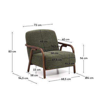 A Kave Home márka Sylo fotelét nagyméretű háttámla és széles ülőfelület jellemzi, amelyeket lekerekített tömör kőrisfa szerkezet keretez. Ez a szerkezet vizuális könnyedséget és ölelő dizájnt kínál.