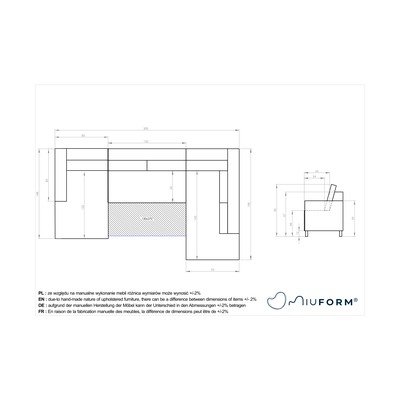 A Miuform márka praktikus és designos kanapékat gyárt, melyek célja a vásárlók összes igényének kielégítése. Mindemellett a márka középponti helyezi a környezet tiszteletben tartását is. A tervezési folyamat fázisában figyelembe veszik a szállítás és tárolás környezetbarát jellegét, optimalizálják például a termékek méreteit. A megfelelő minőség elérése érdekében a kanapék több eleme kézzel készített.