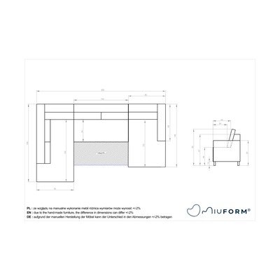 A Miuform márka praktikus és designos kanapékat gyárt, melyek célja a vásárlók összes igényének kielégítése. Mindemellett a márka középponti helyezi a környezet tiszteletben tartását is. A tervezési folyamat fázisában figyelembe veszik a szállítás és tárolás környezetbarát jellegét, optimalizálják például a termékek méreteit. A megfelelő minőség elérése érdekében a kanapék több eleme kézzel készített.