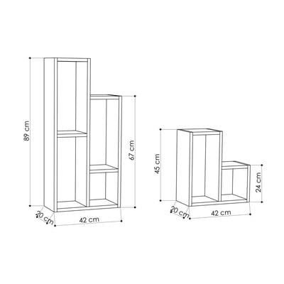 KönyvespolcMDF, felületkezelés: melamin, fehér, szélesség 42 cm, magasság 89 cm, mélység 20 cm