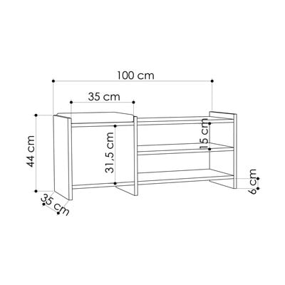 CipőtartóÜlőkés, MDF, felületkezelés: melamin, fehér, cipők száma (pár) 10 , szélesség 100 cm, magasság 44 cm, mélység 35 cm