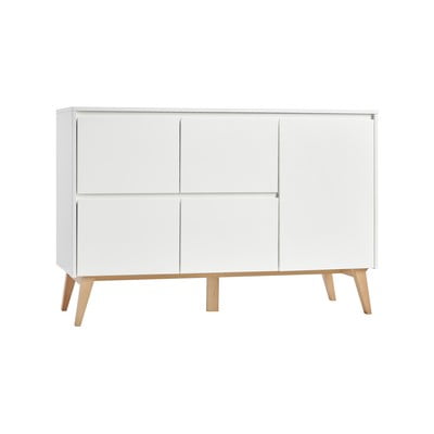 Rendezd be kisgyermeked szobáját skandináv stílusban a Pinio márka Swing termékcsaládjával! Ez a komód fehér deszkákból készült. A tömör bükkfa lábaknak köszönhetően az egész szerkezet stabil. Praktikus színkombinációjának köszönhetően könnyedén harmonizálhatod a bútort a belső tér többi berendezésével. A tárolóhelyen kívül pelenkázó pultot is biztosít.