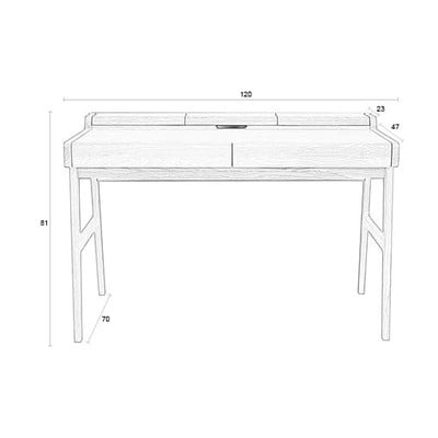 A Zuiver márka Kaat íróasztala bőséges tárolóhelyet kínál. Három polccal rendelkezik a tetején és két fiókkal a belsejében.
