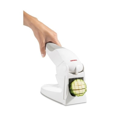 A Leifheit márka zöldség- és burgonyaszeletelője ideális konyhai segítő. A csúszásmentes fogantyúnak és az alsó rétegnek köszönhetően biztonságos és könnyű szeletelést biztosít. Két éles késbetétet tartalmaz 10 mm-es és 12 mm-es rudak vágásához. Burgonyához, cukkinihoz, uborkához és sárgarépához is alkalmas. A pengéket kézzel kell mosni, a többi rész mosogatógépben mosható.