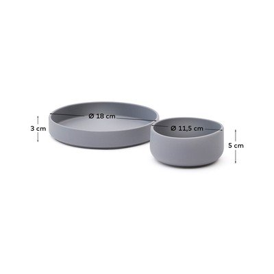 A szett két darabból áll: egy lapos tányérból és egy tálból.