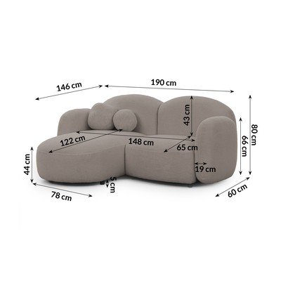 Világosbarna buklé sarokkanapé (bal oldali-heverő résszel) Orbit – Ropez