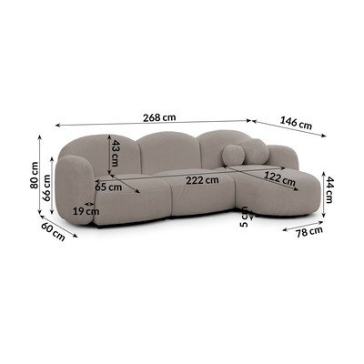Világosbarna buklé sarokkanapé (jobb oldali-heverő résszel) Orbit – Ropez