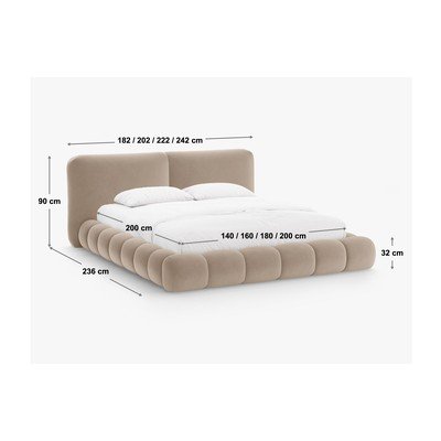 Világosbarna kárpitozott ágyneműtartós franciaágy ágyráccsal 200x200 cm Solange – Micadoni