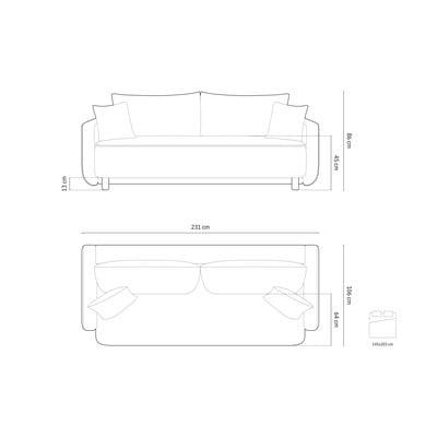 Bézs kinyitható tárolóhelyes kanapé 231 cm Elen – Micadoni