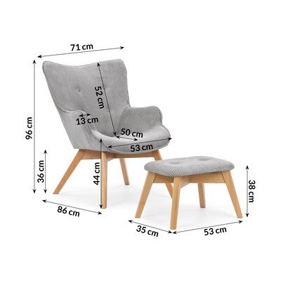 Bézs kordbársony fotel lábtartóval Niko – Ropez