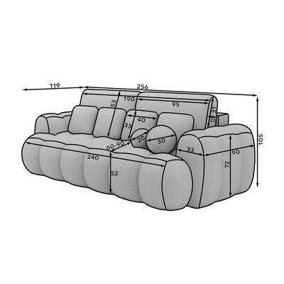 Kordbársony, kinyitható, szürke, háromszemélyes, szélesség 256 cm