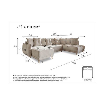 KordbársonyKinyitható-tárolóhelyesJobb oldali-U alakúSzürkeÖt- és többszemélyesSzélesség 320 cmMélység 191 cmÜlésmélység 58 cm