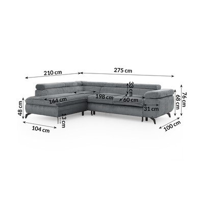 KordbársonyÁllítható-kinyitható-tárolóhelyesBal oldali-L alakúSzürkeHáziállatbarát-foltállóNégyszemélyesSzélesség 275 cm