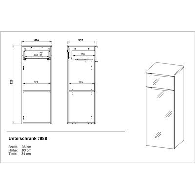 Vasio fürdőszoba szekrényMagas-fali-keskeny, forgácslap, felületkezelés: melamin-felületkezelés: üveg, fényes dekorral, szürke, szélesség 36 cm, magasság 93 cm, mélység 34 cm