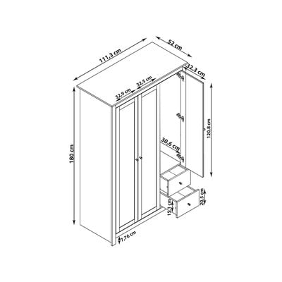 Tölgyfa dekorral, MDF, felületkezelés: fólia, szürke, szélesség 112 cm, magasság 180 cm, mélység 52 cm