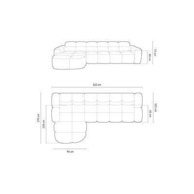 Bal oldali-heverő résszel, szürke, négyszemélyes, szélesség 310 cm