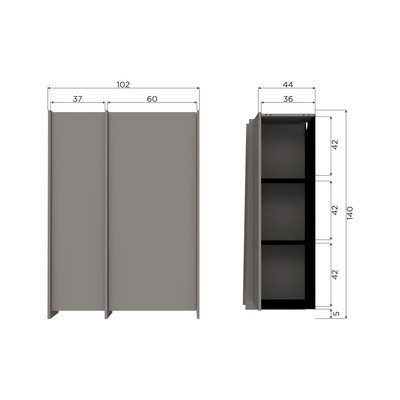 Kőrisfa dekorral, furnér, felületkezelés: furnér, szürke, szélesség 102 cm, magasság 140 cm, mélység 44 cm