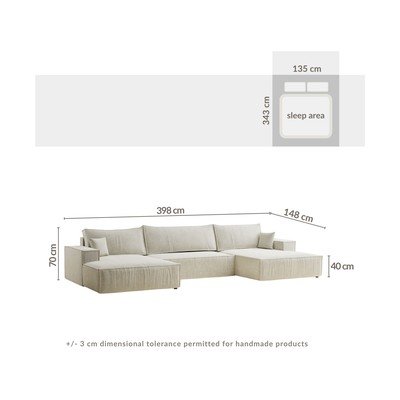 Bézs zsenília kinyitható-tárolóhelyes sarokkanapé (U alakú) Kyoto – Maison de Rêve