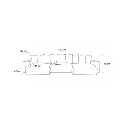 Kordbársony, U alakú, szürkésbarna, öt- és többszemélyes, szélesség 420 cm