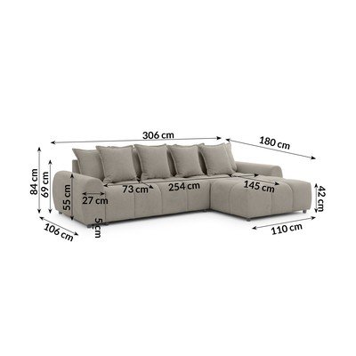 Szürkésbarna sarokkanapé (jobb oldali-heverő résszel) Albane – Ropez