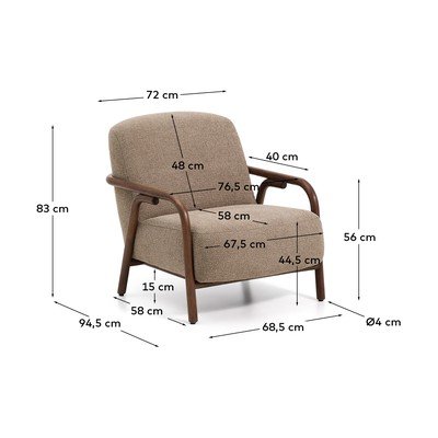 A Kave Home márka Sylo fotelét nagyméretű háttámla és széles ülőfelület jellemzi, amelyeket lekerekített tömör kőrisfa szerkezet keretez. Ez a szerkezet vizuális könnyedséget és ölelő dizájnt kínál.