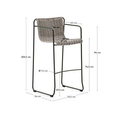 Az ülőfelület és a háttámla kézzel fonott, strapabíró kötélből készült, amely UV-álló is. Ennek köszönhetően a bárszék hosszú távú napfénynek való kitettség esetén is megőrzi eredeti megjelenését.