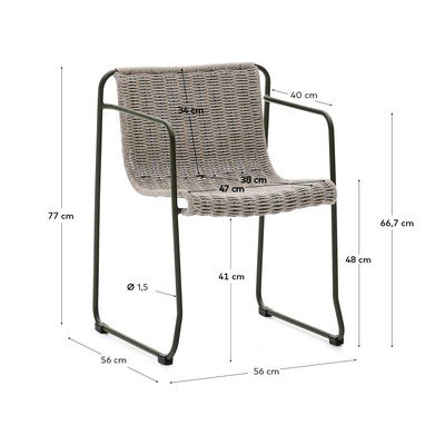 A szék szerkezete horganyzott acélból van, amely korrózió- és rozsdaálló, így tartósabb, mint a hagyományos acél. Ezen jellemzőknek köszönhetően a Maurina szék teljes mértékben alkalmas a kültéri használatra.
