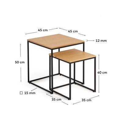 Yoana tárolóasztal szett2 db-os, tölgyfa dekoros asztallappal, fekete-natúr színű, 45x45 cm, magasság 50 cm