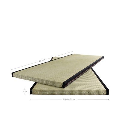 A tatami egy hagyományos japán matrac, amit testmozgásra és pihenésre, illetve fejtámlának is használnak. Rizsszárból és zúzott Igusa szalmából készül, a fekete heveder pedig poliészterszállal összevarrt pamutszálból. Míg nyáron hűsít, télen kellemesen meleg. A természetes anyagok használatának köszönhetően jó illata is van.