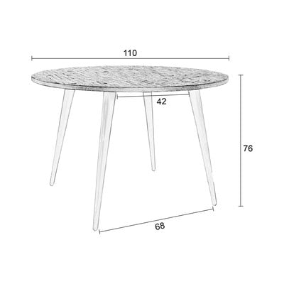 A White Label étkezőasztal matt fekete színű, újrahasznosított teakfa asztallappal rendelkezik, átlátszó lakkozással.