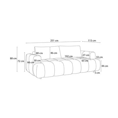 Kinyitható-tárolóhelyes, téglavörös, háromszemélyes, szélesség 251 cm