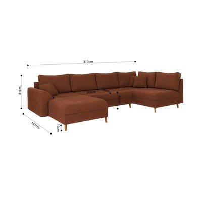 Kordbársony, bal oldali-U alakú, téglavörös, öt- és többszemélyes, szélesség 310 cm