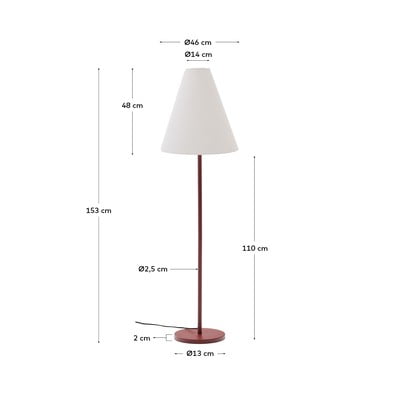 A Kave Home márka Navat állólámpája elegáns, mégis minimalista stílust visz a belső térbe. Terrakotta kivitelű fémből készült, és fehér szövetből készült kúp alakú búra egészíti ki. E27-es izzóval kompatibilis, amelynek maximális teljesítménye 40 W. Az izzó nem tartozék.