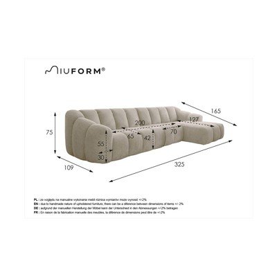Bézs sarokkanapé (jobb oldali-heverő résszel) Shell – Miuform