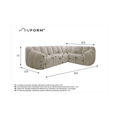 Bézs sarokkanapé (jobb oldali-L alakú) Shell – Miuform