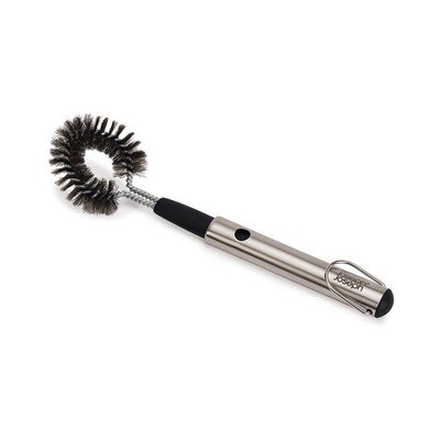 A kefe tartós rozsdamentes acélból készült, és kihúzható nyéllel rendelkezik, amely lehetővé teszi, hogy messzebbre elérjen, miközben visszahúzva kompakt méretű és kényelmesen tárolható egy hagyományos fiókban. A kefefej a könnyű tisztítás érdekében levehető. A nyél végén egy praktikus hurok is található a felakasztáshoz.