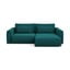 Türkiz bársony kinyitható-tárolóhelyes sarokkanapé (bal oldali-heverő résszel) Kapua – Makamii