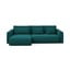Türkiz bársony kinyitható-tárolóhelyes sarokkanapé (bal oldali-heverő résszel) Kapua – Makamii