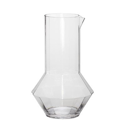A Hübsch márka Aster kancsója kézzel készült, tartós, átlátszó üvegből. Egyedi formája a fazettált talppal modern és elegáns megjelenésű, amely bármelyik konyhát vagy étkezőasztalt feldob.