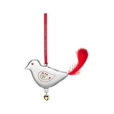 Az üvegmadár kézzel fújt üvegből készült, ami egyediséget garantál. Vizuálisan szemként egy piros szív, a testen arany szívek, farkként pedig egy valódi piros toll jelenik meg, az alján pedig lógó, aranyszínű, szív alakú medál díszíti. Egy selyemszalagot is tartalmaz, amellyel a karácsonyfára, egy ágra vagy az ablakba is felakasztható. Gyönyörűen kiegészíti a nosztalgikus karácsonyi kollekció többi darabját. Ann-Sofi Romme 1993 óta készíti karácsonyi kollekcióját a Holmegaard számára, és mindegyik egy eredeti karácsonyi történetet mesél el, amely sokakban örömet és a romantikus karácsonyi pillanatok emlékét ébreszti fel.