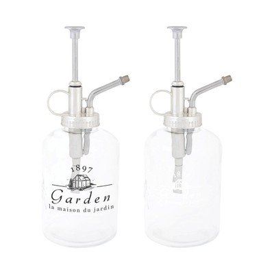 Üvegből készültek az üvegek, jól permeteznek, az ezüst színe kicsit lehámlik. Szép kiegészítője a virágaimnak.