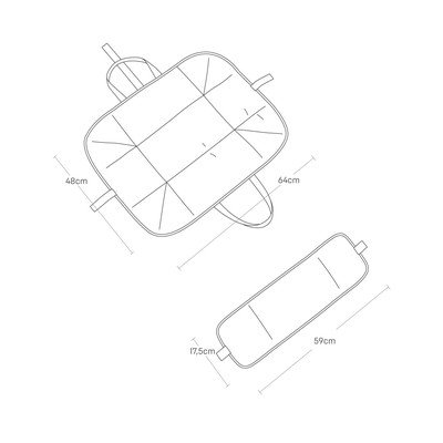 Összezárva vasalótartó táskaként szolgál, külső zsebekkel az apró tárgyak számára és könnyű hordozást biztosító fogantyúkkal, amelyek akár 2 kg súlyt is elbírnak. Kinyitva egy mobil vasalódeszkává alakul át. Anyaga ellenáll az akár 230 °C-os hőmérsékletnek is.