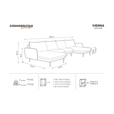 Vienna világosszürke sarokkanapé, jobb oldali - Cosmopolitan Design