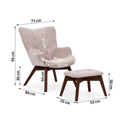 Világos rózsaszín kordbársony fotel lábtartóval Niko – Ropez