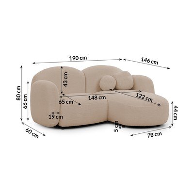 Krémszínű buklé sarokkanapé (jobb oldali-heverő résszel) Orbit – Ropez