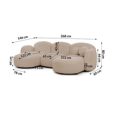 Világosbarna buklé sarokkanapé (jobb oldali-heverő résszel) Orbit – Ropez