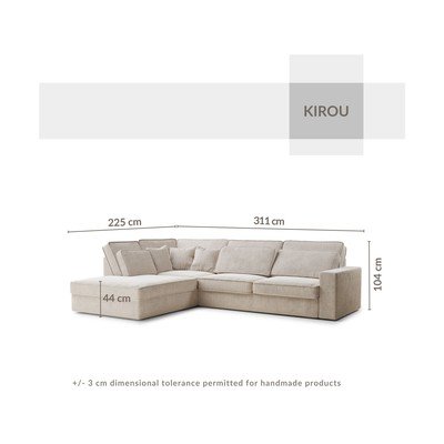 Világosbarna zsenília sarokkanapé (jobb oldali-L alakú) Kirou – Maison de Rêve