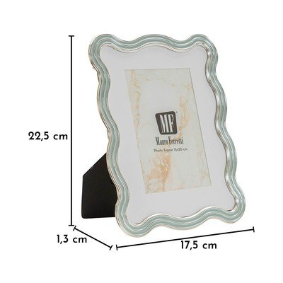 17,5x22,5 cm, álló, fém-üveg, világoskék-ezüstszínű, képméret: 15x20