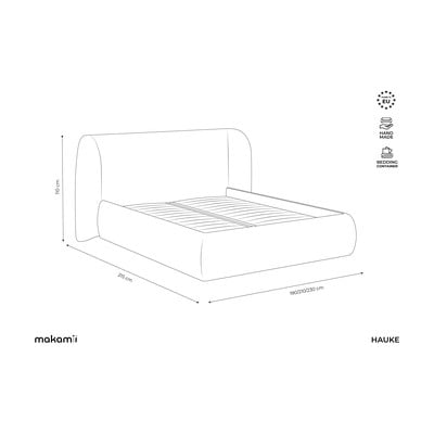 Világosszürke kárpitozott ágyneműtartós franciaágy ágyráccsal 160x200 cm Hauke – Makamii